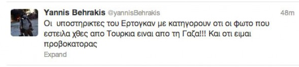 Ωστόσο οι τουρκικές αρχές δεν δίστασαν να κατηγορήσουν τον Έλληνα φωτογράφο ως προβοκάτορα λέγοντας πως η φωτογραφία είναι από τη Γάζα.